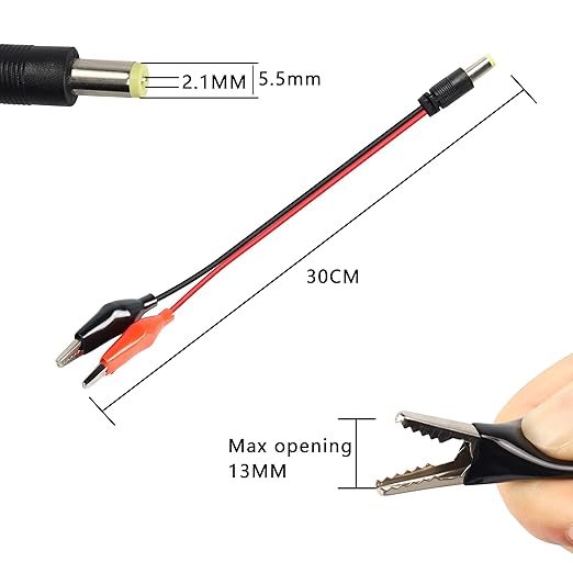 Alligator Clip to DC(5.5mm x 2.1mm) Power Cable:It is make quick connections in the distribution board for testing and on the end of wires in circuits. Or Turn any battery pack into a power supply with this incredibly useful adapter.