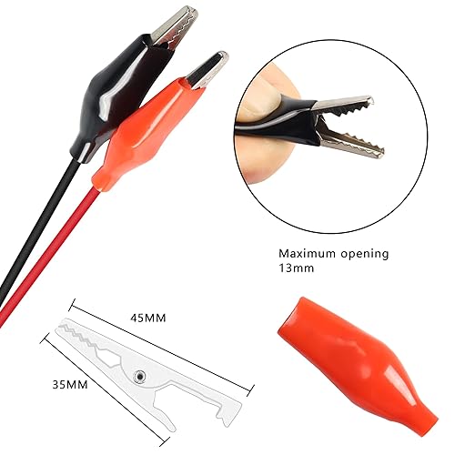 Alligator clips test leads that have insulation covering all but a small part of the ends.Probe tip is hardened to make quick connections in the distribution board for testing and on the end of wires in circuits.